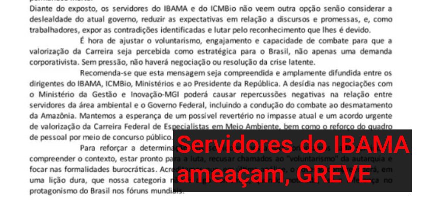 E seguem: “Diante do exposto, os servidores do Ibama e do ICMBio não veem outra opção senão considerar a deslealdade do atual governo, reduzir as expectativas em relação a discursos e promessas, e, como trabalhadores, expor as contradições identificadas e lutar pelo reconhecimento que lhes é devido”.
